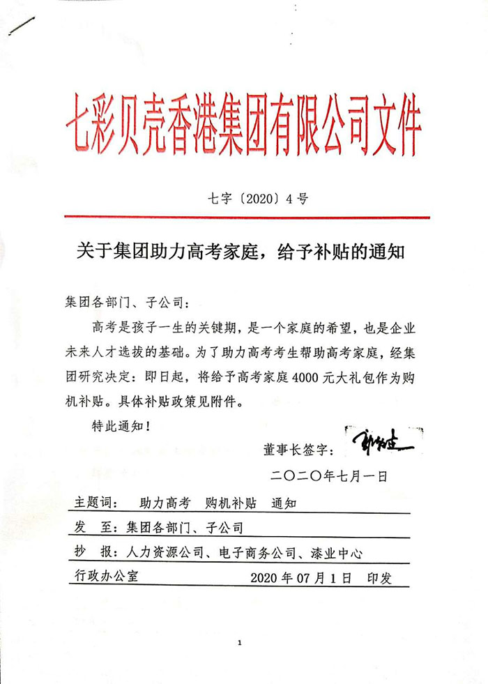 關(guān)于集團(tuán)助力高考家庭,給予補(bǔ)貼的通知(圖文)