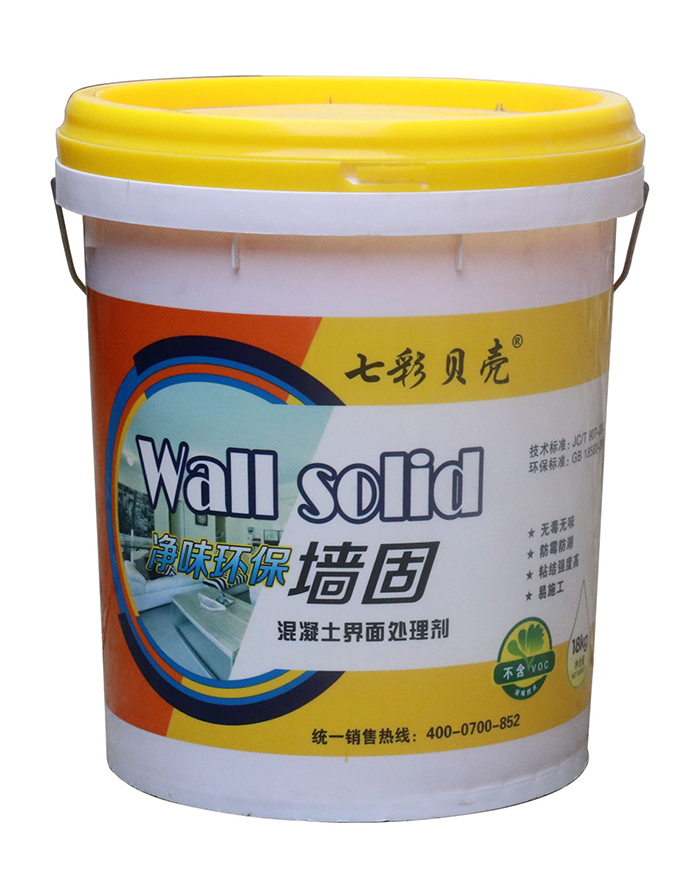 墻固即聚合物混凝土界面處理劑,外觀為乳白色膠液。具有滲透性,能充分浸潤(rùn)墻面基層,使基層密實(shí),提高光滑基層界面附著力,粘結(jié)強(qiáng)度高,保證水泥拉毛牢固可靠,提高膩?zhàn)踊蚧覞{與墻面基層的粘結(jié)強(qiáng)度,有效防止找平層空鼓、開(kāi)裂,提高施工質(zhì)量,加快施工進(jìn)度,是裝飾裝修工程中不可缺少的配套材料。適用于混凝土、加氣混凝土和磚混墻面批刮膩?zhàn)踊蚰ɑ仪盎鶎拥慕缑嫣幚恚m用于在墻面基層進(jìn)行人工“造毛”,即造水泥拉毛。